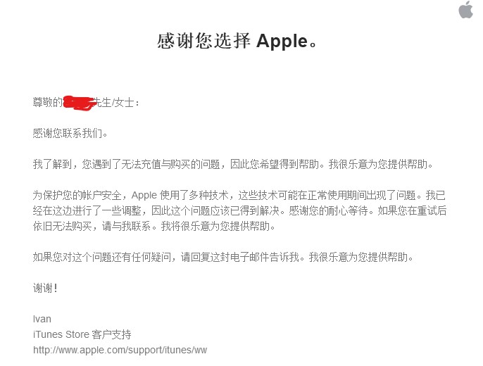 苹果会在72小时内给你解决。我是上午发了邮件,下午就解决了。