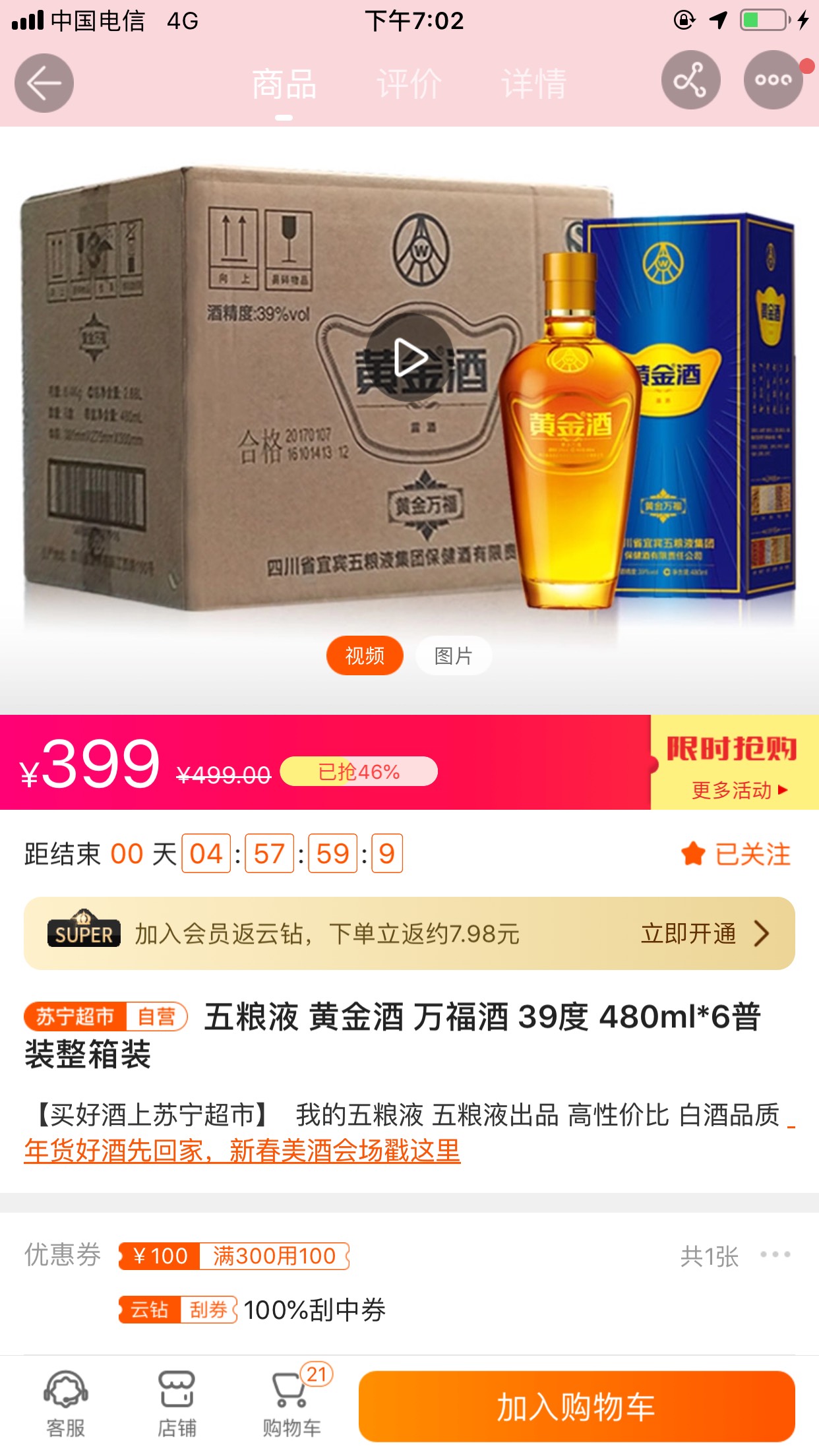 如图,399,用300-100券,然后20%返利,和40一瓶,和几天前的价格一样,刚需可入